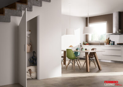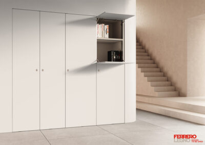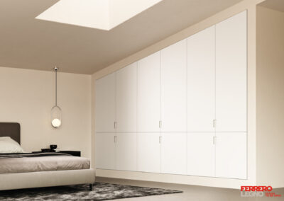 FerreroLegno, oltre alla vasta gamma di porte interne propone la collezione Skema, un sistema di armadi a parete filomuro che può essere verniciato del colore del muro. Il sistema viene realizzato su misura ed è ideale per creare giochi d’arredo, sfruttando gli anfratti e le nicchie delle abitazioni, ricavandone spazi creativi, armadi a muro, sportelli per nicchie, così da valorizzare al massimo la propria abitazione.