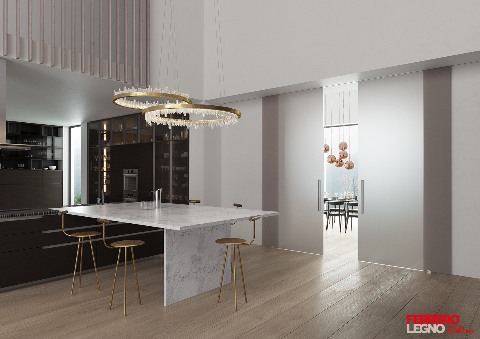 Scenario è una collezione modulare di pareti scorrevoli di FerreroLegno, dal design moderno ed accattivante. La linea di porte d’arredo scorrevoli, realizzabili in vetro o legno, stimola la creatività in quanto tali elementi sono creati per dividere gli spazi spostando i confini con eleganza tramite superfici trasparenti. Il sistema Scenario può essere realizzato con elementi fino a 290 cm verticali.